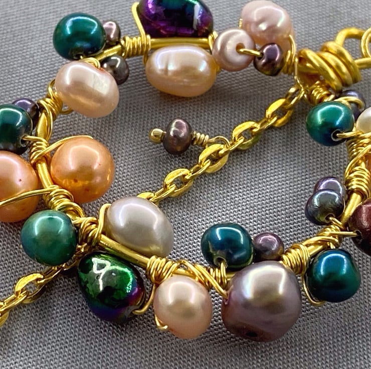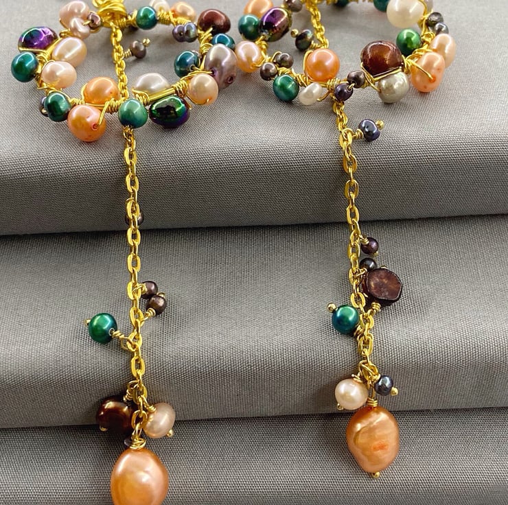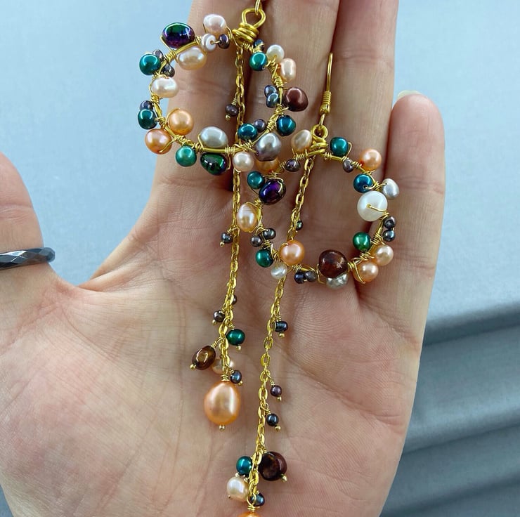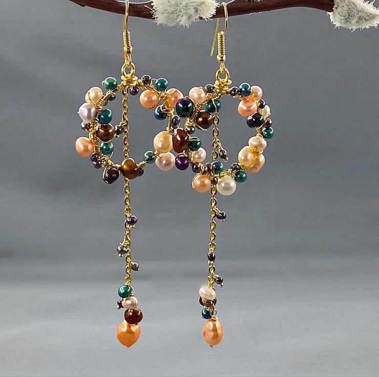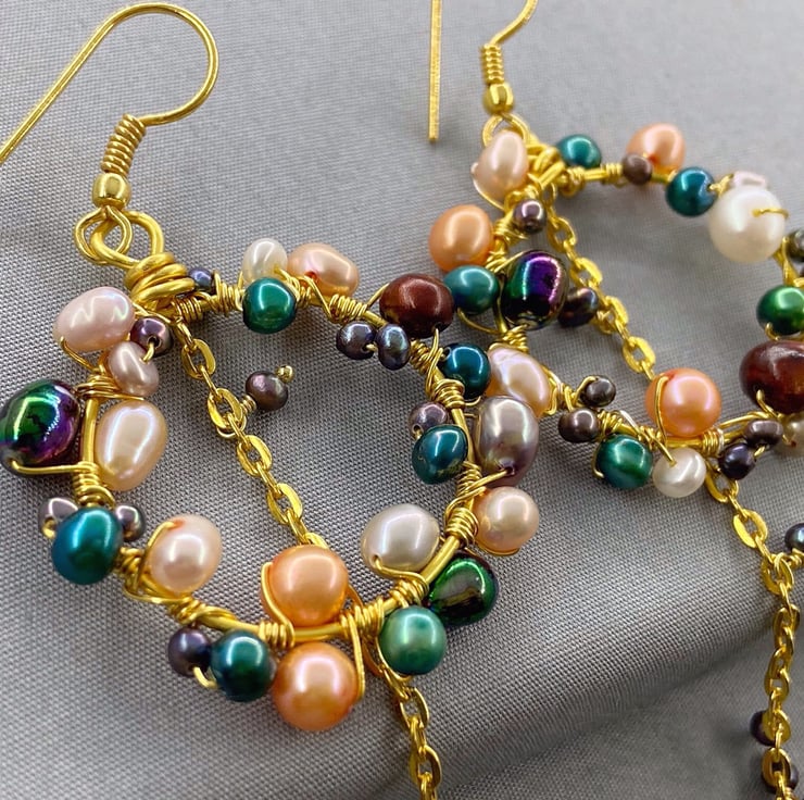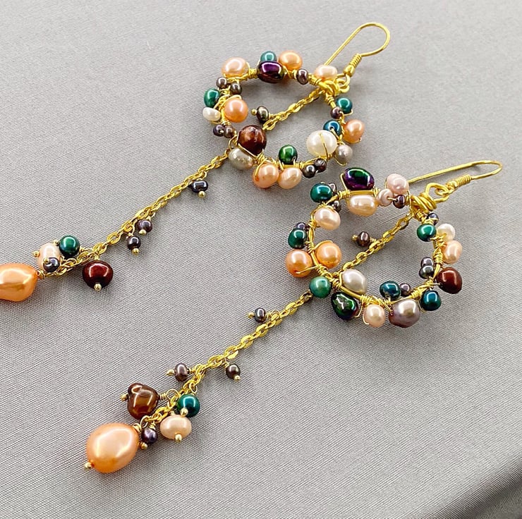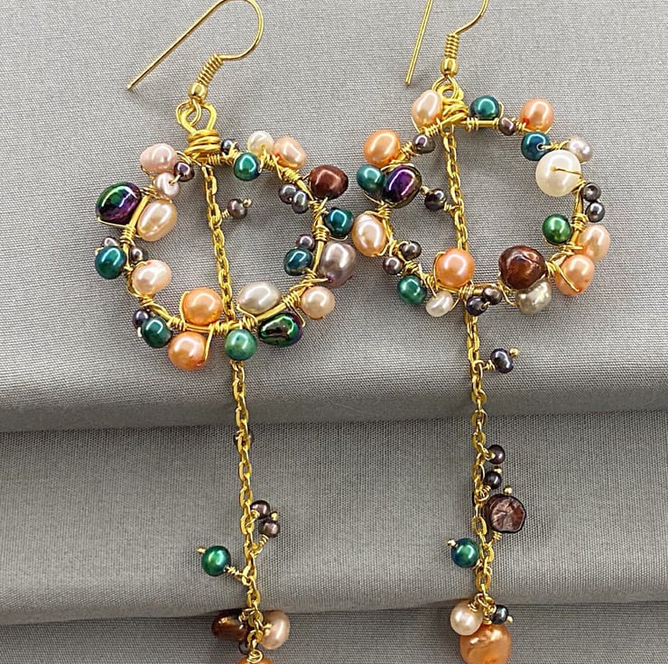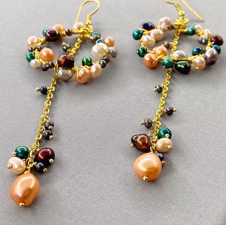 A stunning and unique pair of earrings featuring lashings of multicoloured cultured pearls, which will complete any outfit.