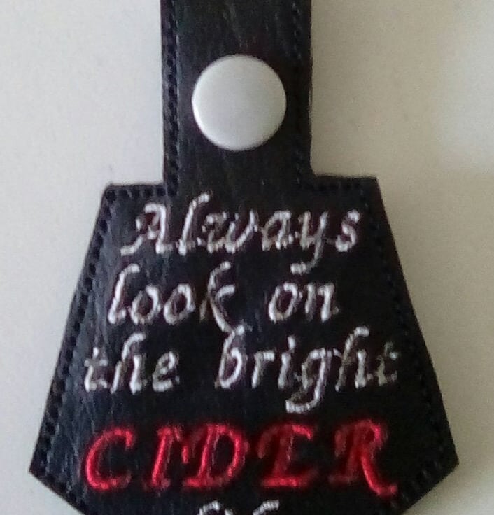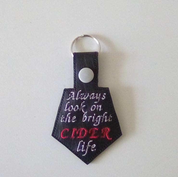 Always look on the bright CIDER life keyring made from black vinyl and backed with black felt.