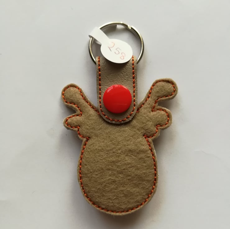 Rudolph the red nosed reindeer keyring, made from vinyl and backed with felt.