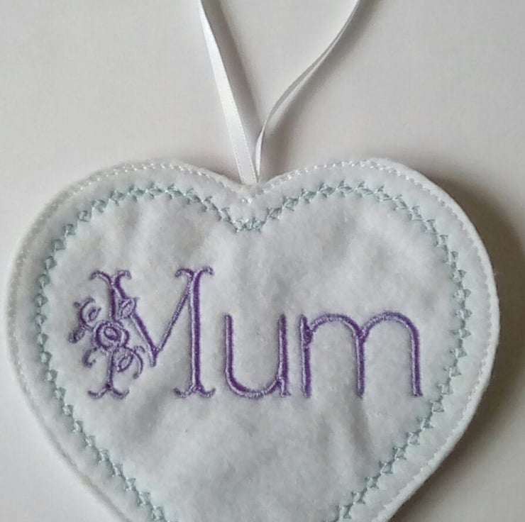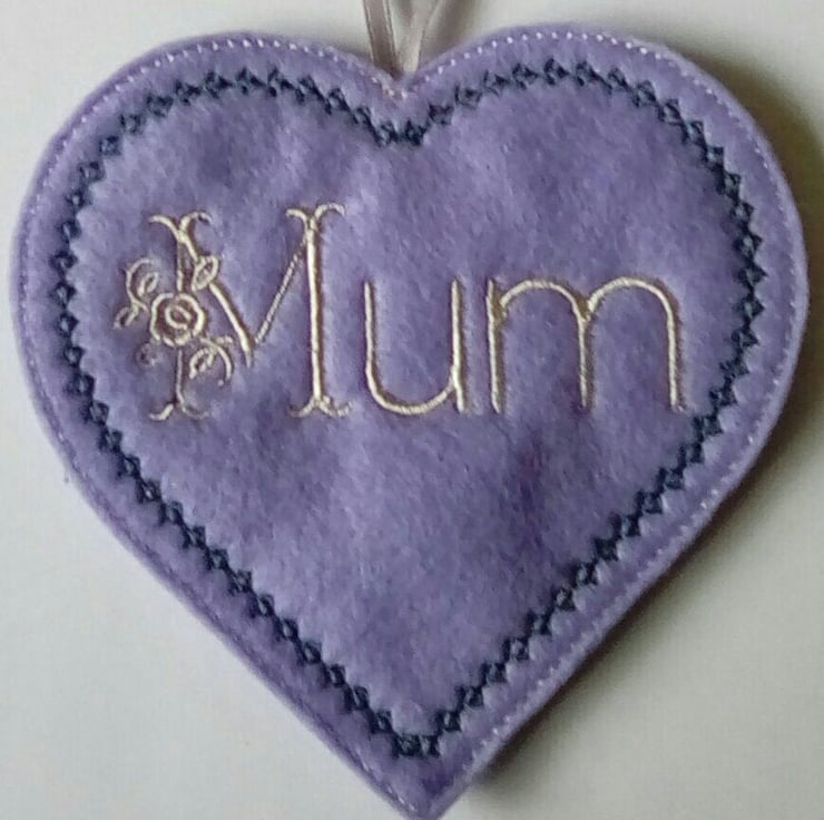 Floral mum heart hanging ornament made from felt.