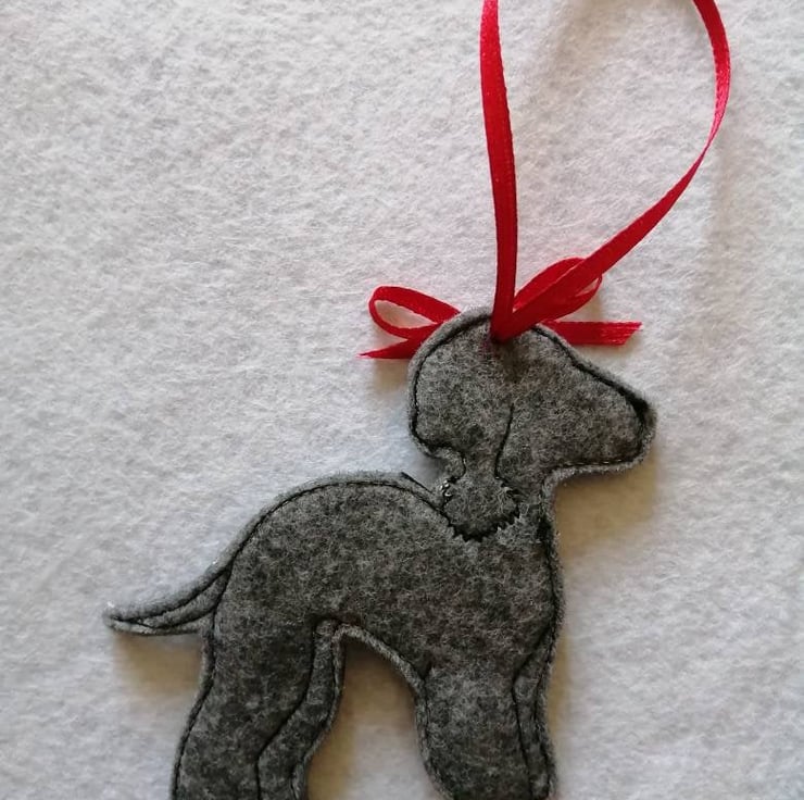 Bedlington Terrier with Santa hat Christmas tree hanging ornament made from felt