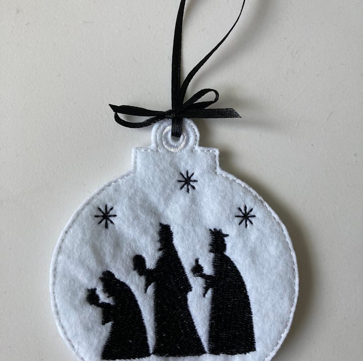 Measures approximately 3.5 ins wide x 4 ins long excluding the ribbon hanging loop.