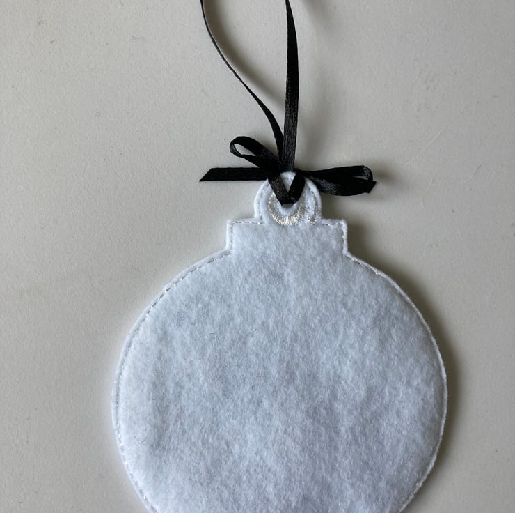Measures approximately 3.5 ins wide x 4 ins long excluding the ribbon hanging loop.