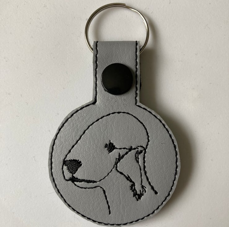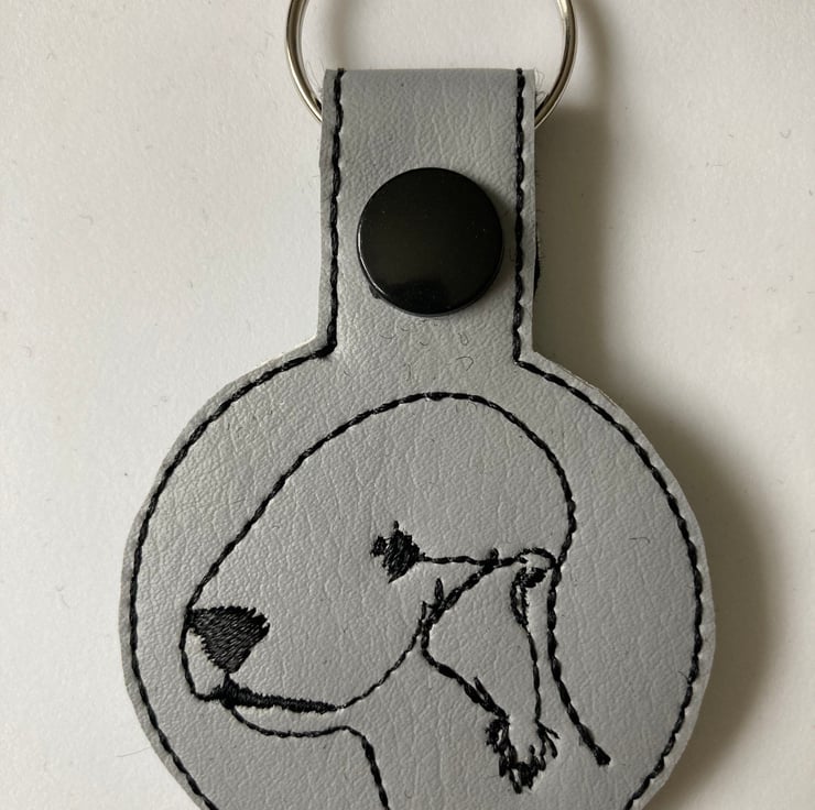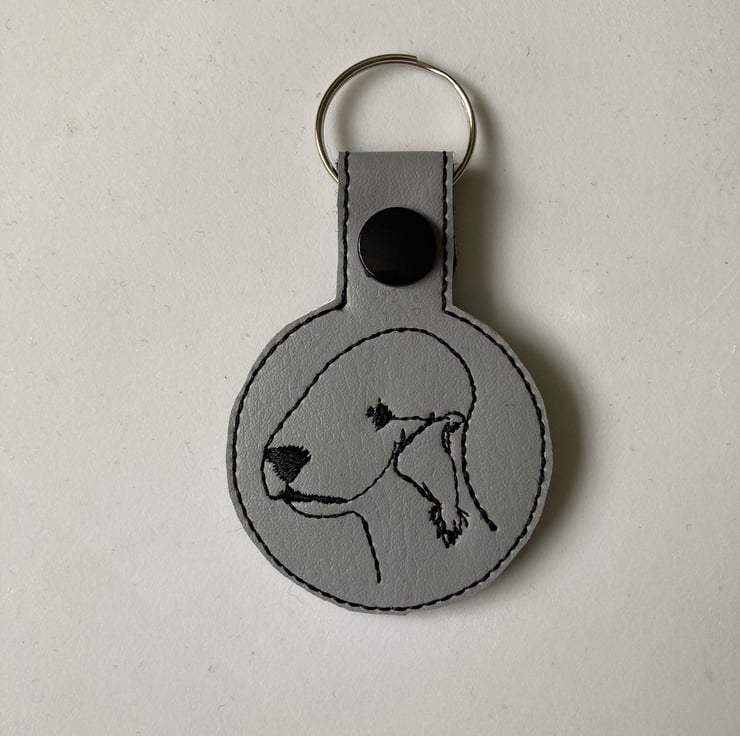 Bedlington Terrier keyring made from vinyl and backed with felt.