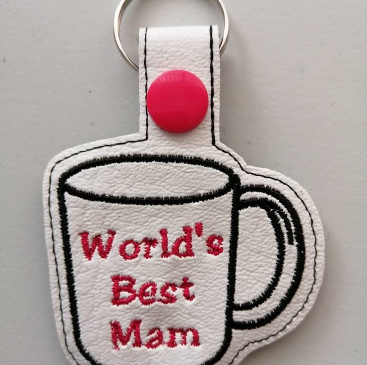 World's best mam keyring made from vinyl and backed with felt.