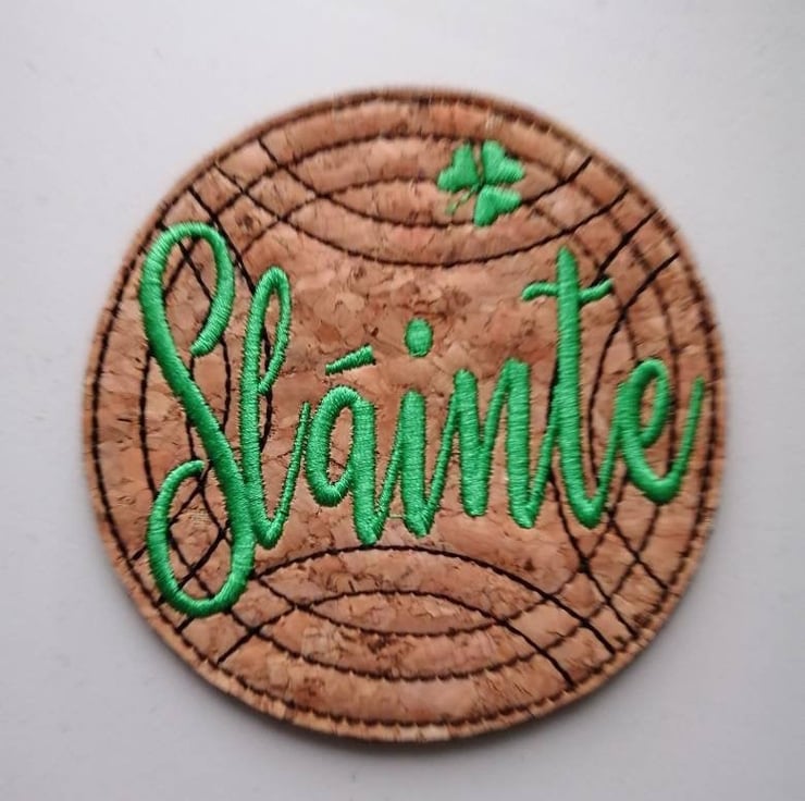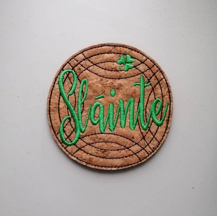 Slainte (Health) Irish coaster made from cork fabric and backed with felt.