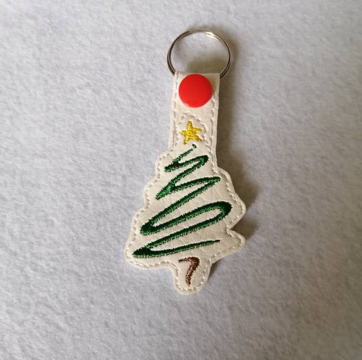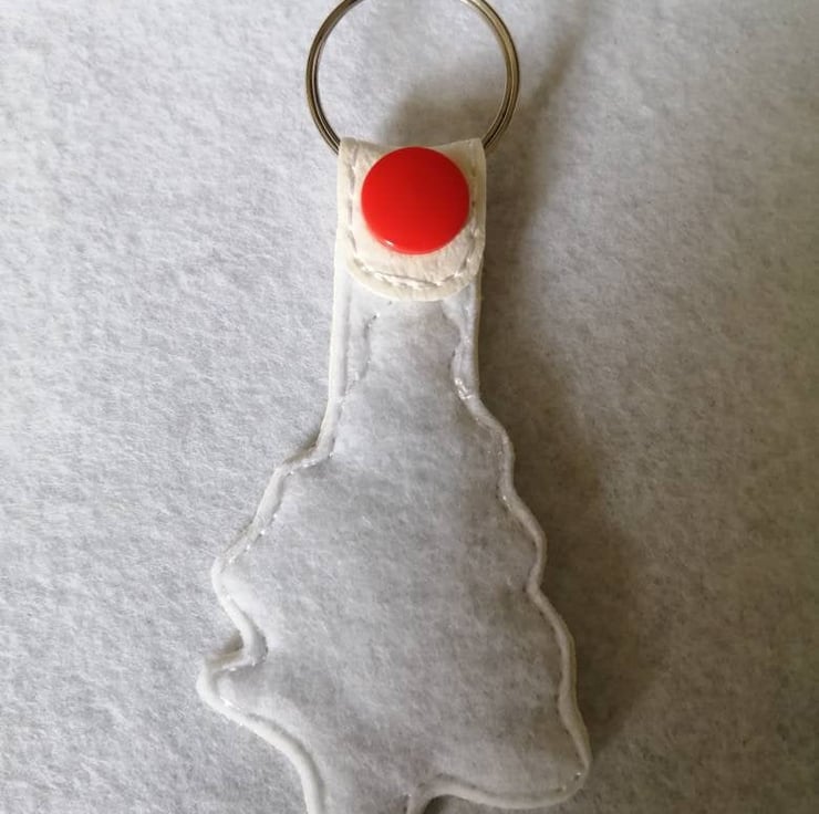 Christmas tree keyring made from white vinyl and backed with white felt.