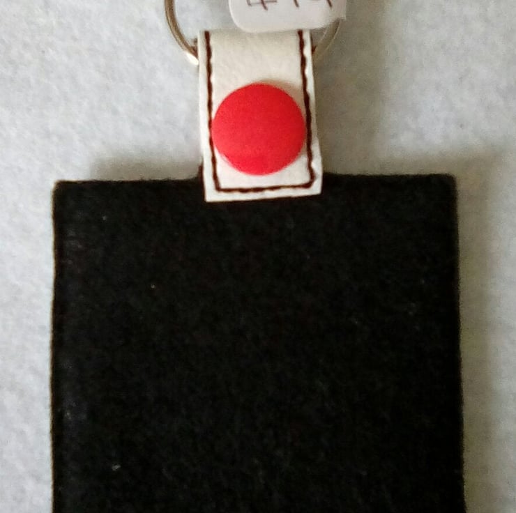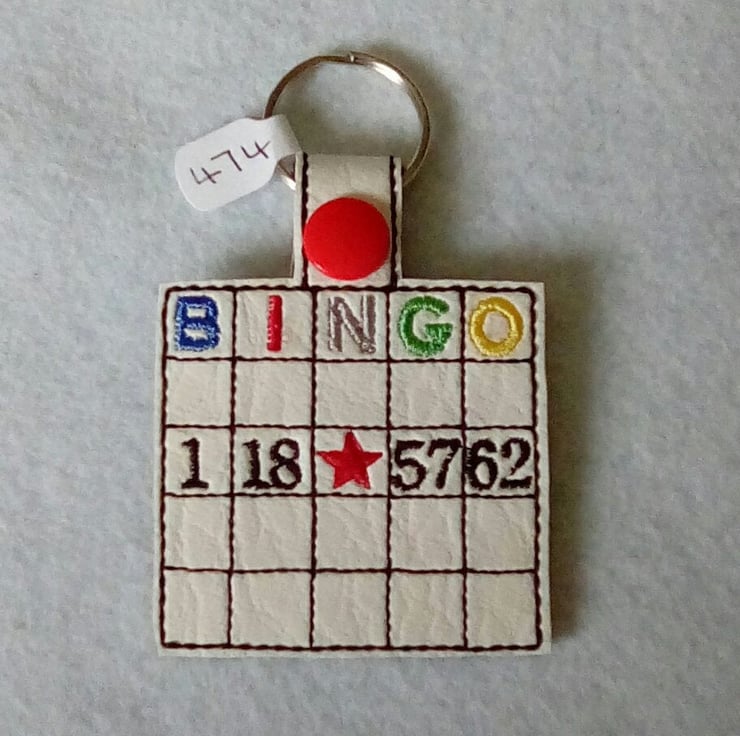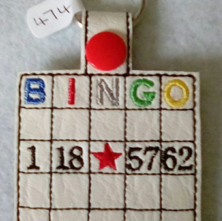 Bingo board keyring with numbers made from vinyl and backed with felt.