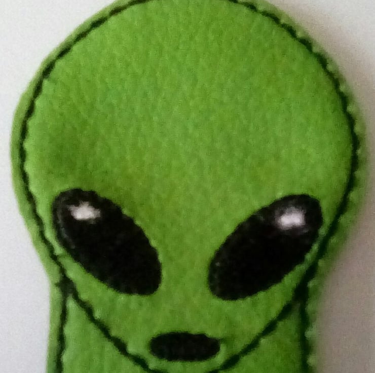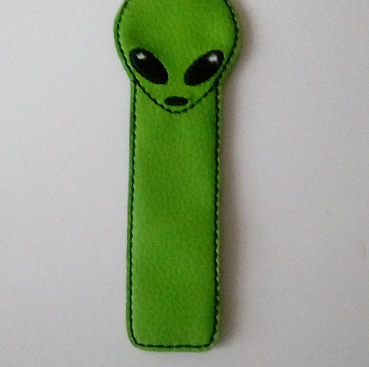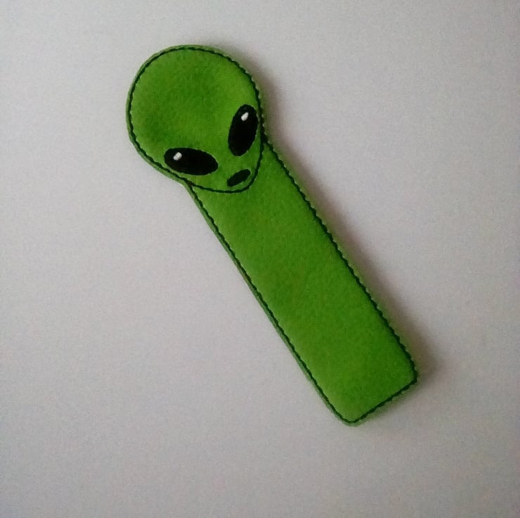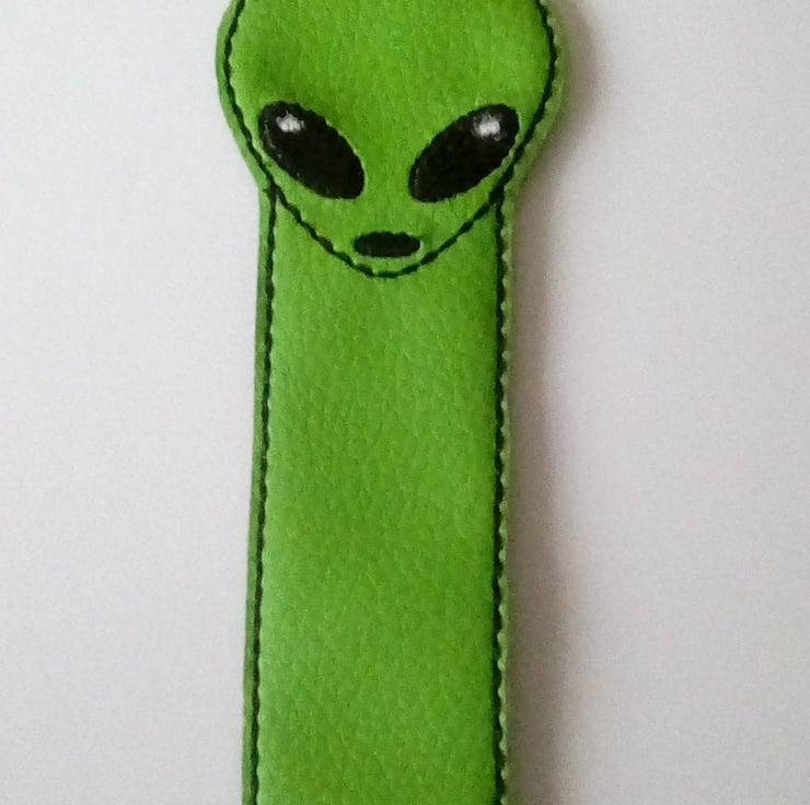 Alien bookmark made from vinyl and backed with felt.