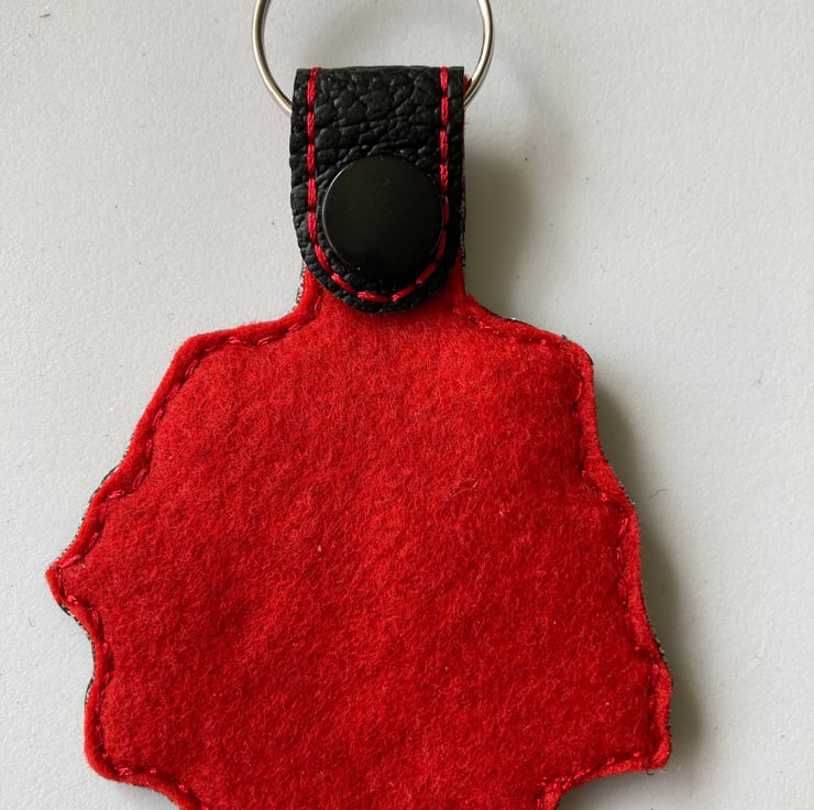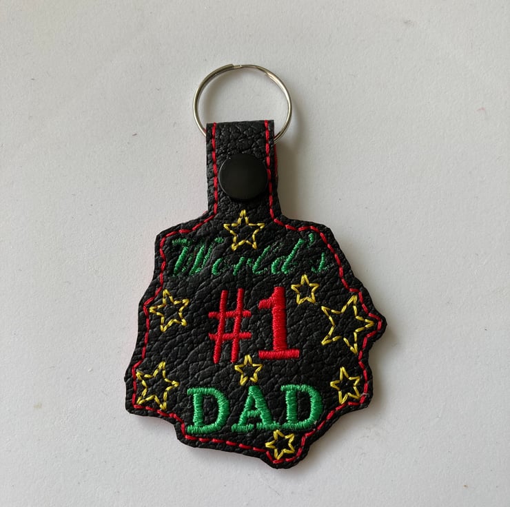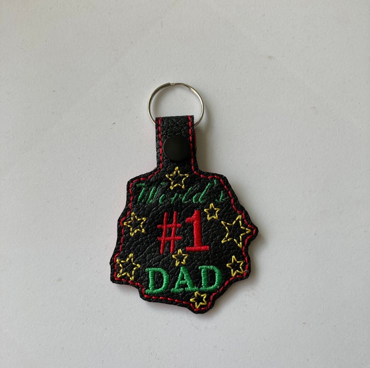 Worlds No.1 keyring made from vinyl and backed with felt.