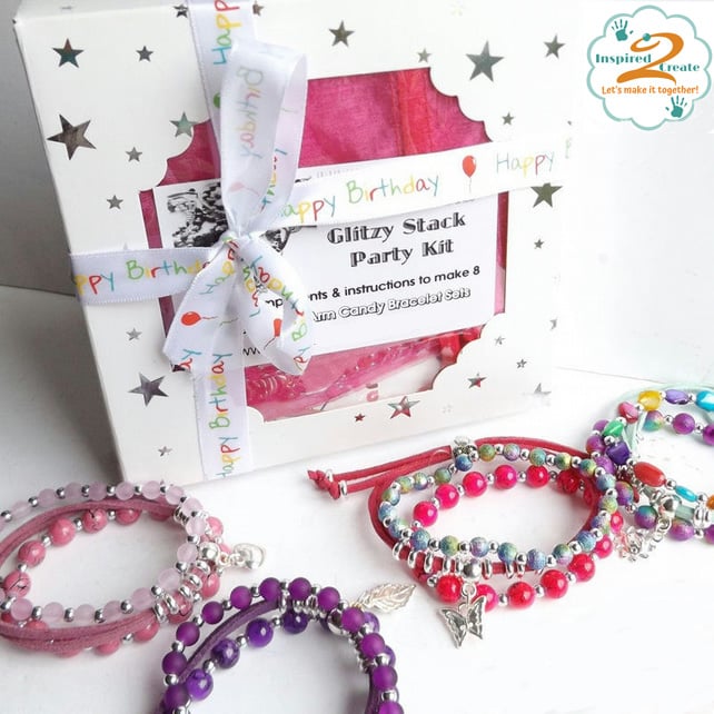 This Party kit includes all the components for each guest to make 3 gorgeous bracelets to fit a wrist circumference of up to 17cm approximately.