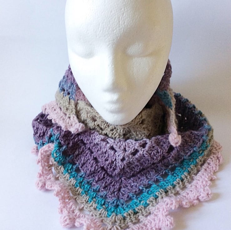 Lovely handmade crochet shawl that can be also worn as a scarf. Great to drape around shoulders on a cool evening or to wrap around your neck for those colder days. Would make a lovely gift for Birthdays, Christmas or Mother’s day.