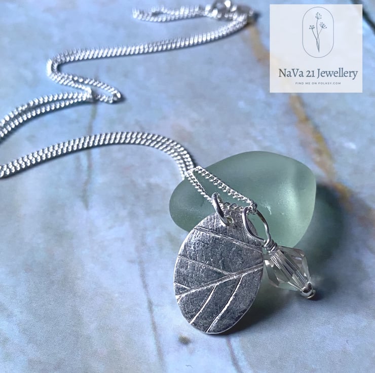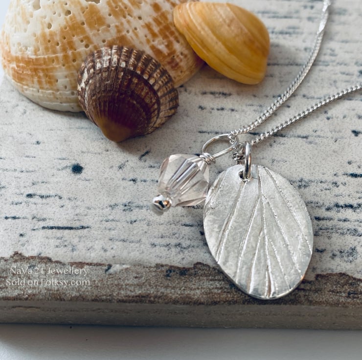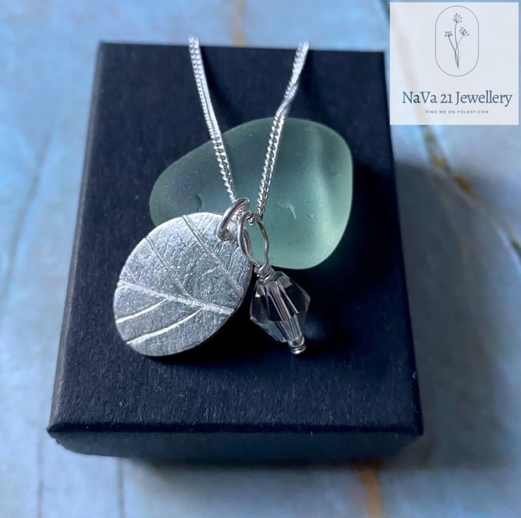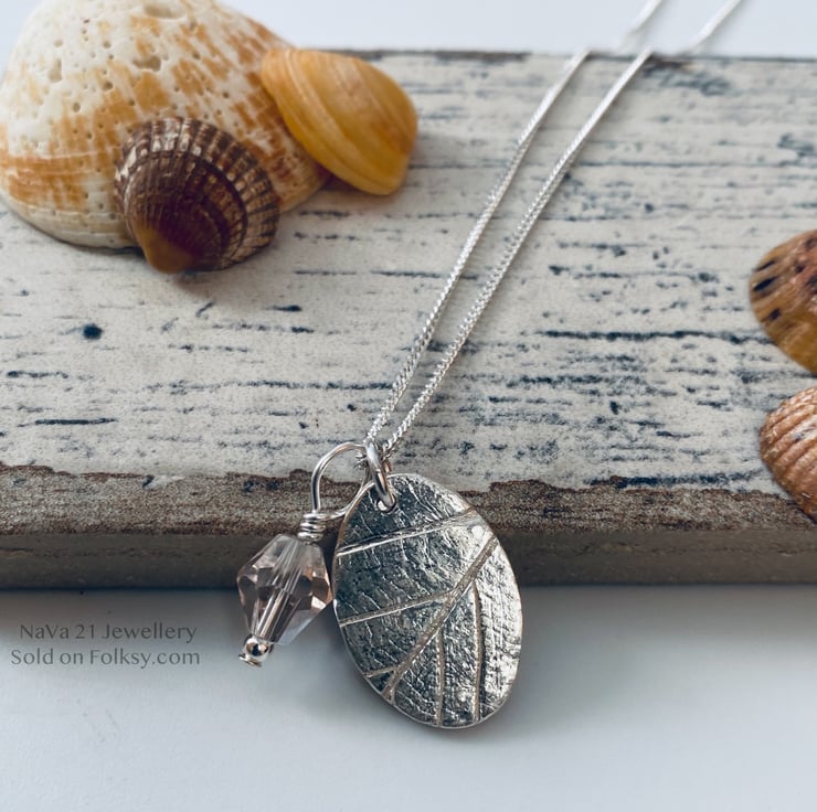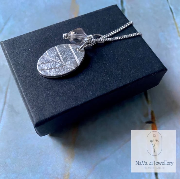 Silver art clay imprinted with a leaf on both sides,moulded, left to dry, fired & polished by hand