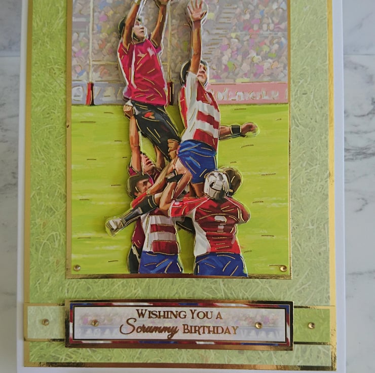 This is a lovely luxury 3D greeting card for anyone who loves rugby!