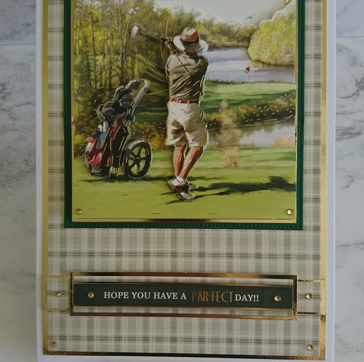 The 3D greeting is also foiled and says "Hope You Have a Par-fect Day!!" and the card is finished with gems.