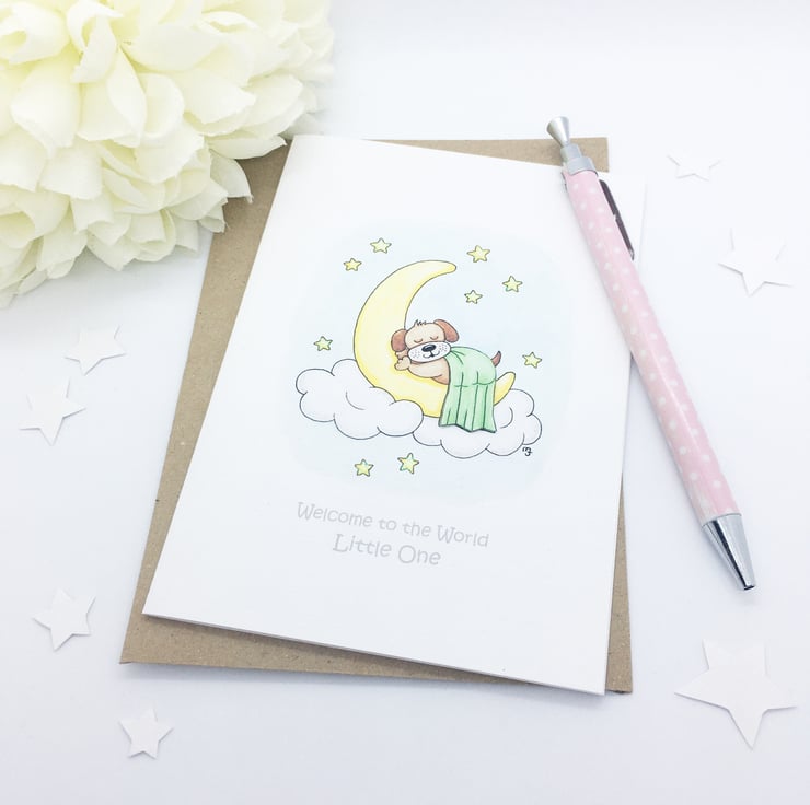 Sleeping Pup Card - Welcome to the World Little One - Baby Card