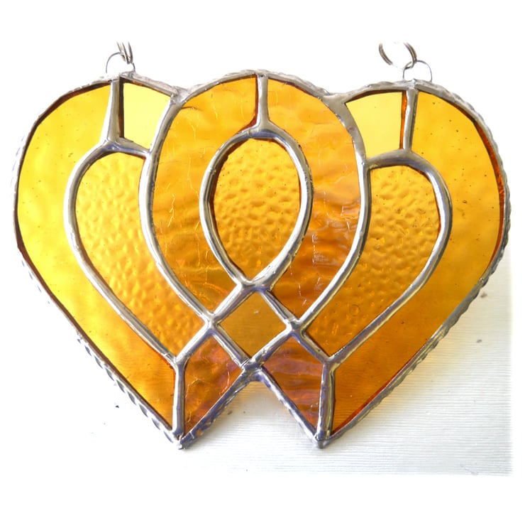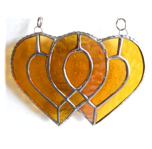 I've used textured and iridised golden glass for the 2 hearts to give lots of sparkle and infilled with some rather prettily textured gold glass.
