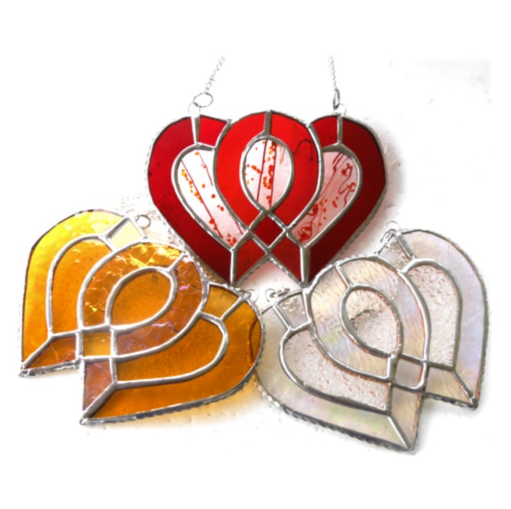 The last photo show this heart together with a red ruby version and a silver wedding also for sale as separate listings. If you can't find these and want one please get in touch and I'll make one for you.
