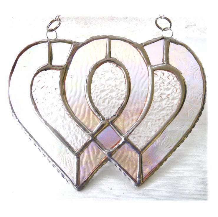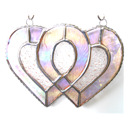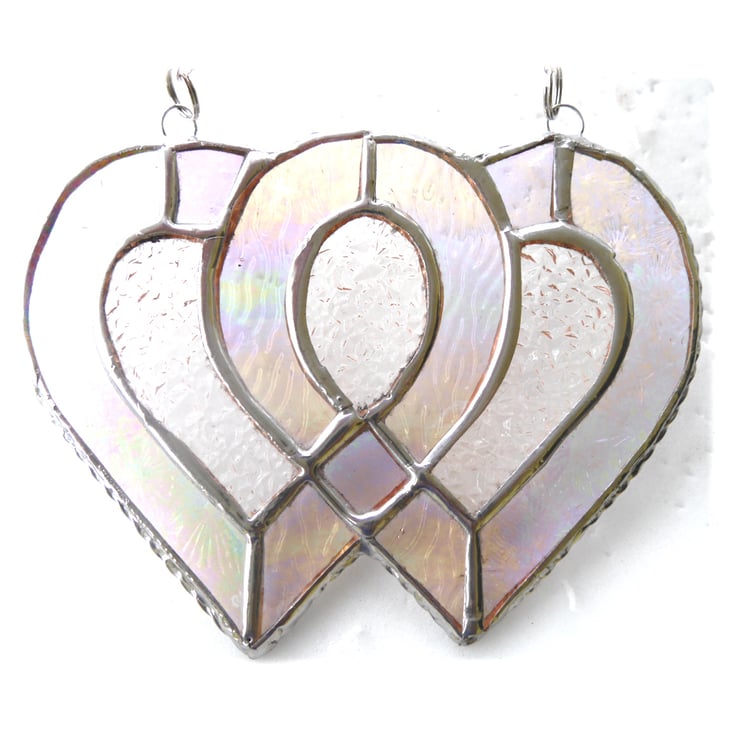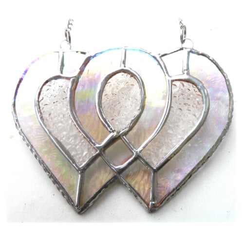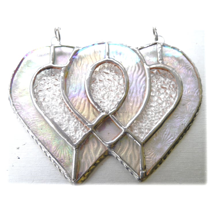 I've used iridised clear cut glass for the 2 hearts to give lots of sparkle and infilled with some rather prettily textured diamond cut clear glass.