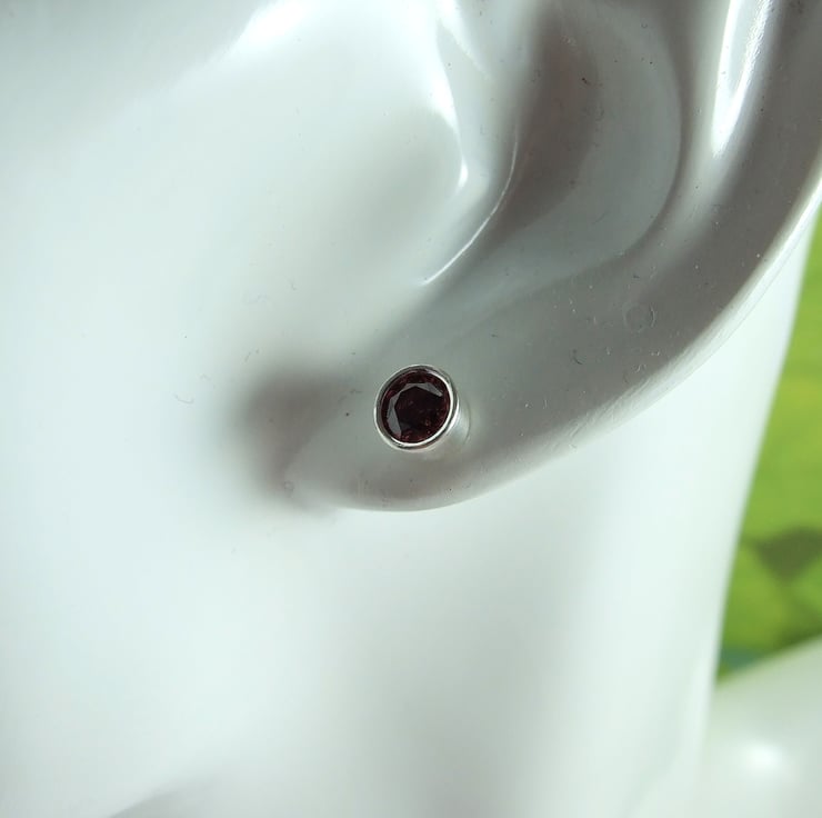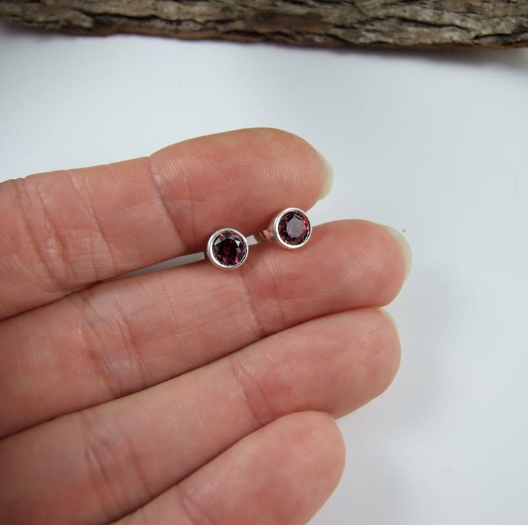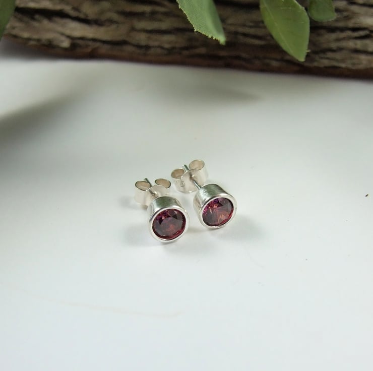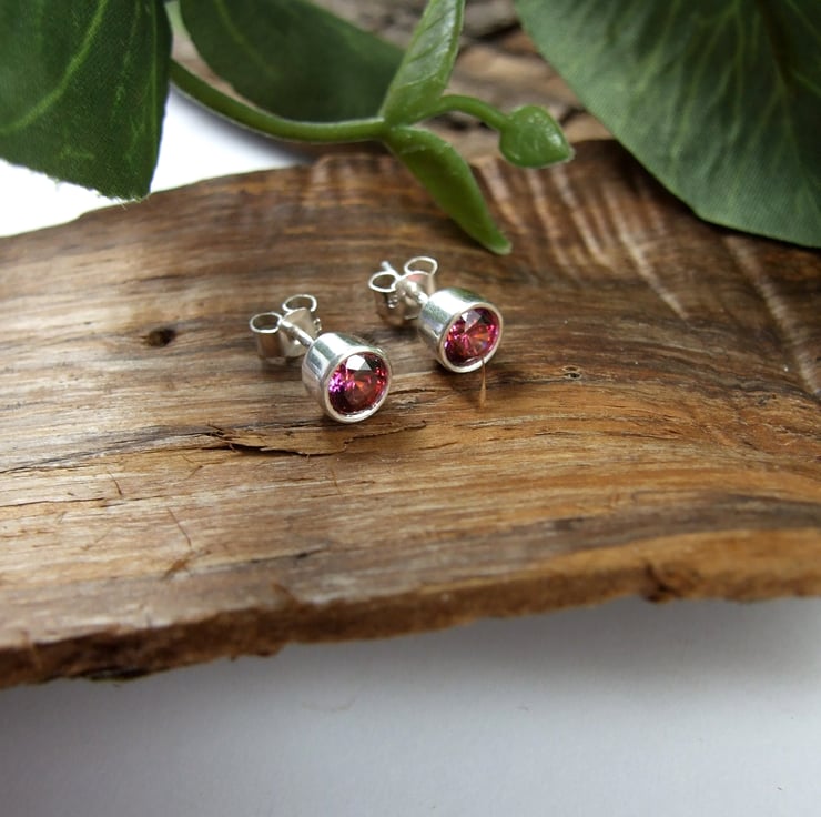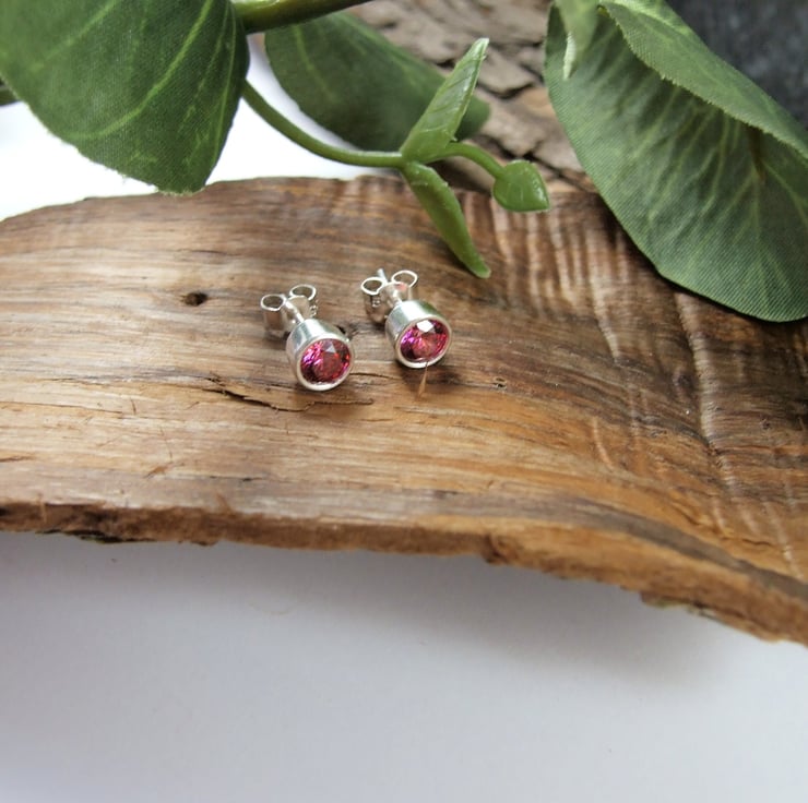 The dainty 5mm studs have been created from 5mm pink Topaz Gemstone set in sterling silver bezel. Studs have butterfly backs.