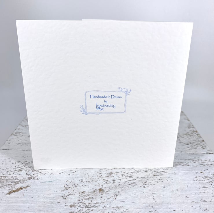The card is 12.5x 12.5cm (13cm in envelope) and will post as large letter at £1.29 first class.