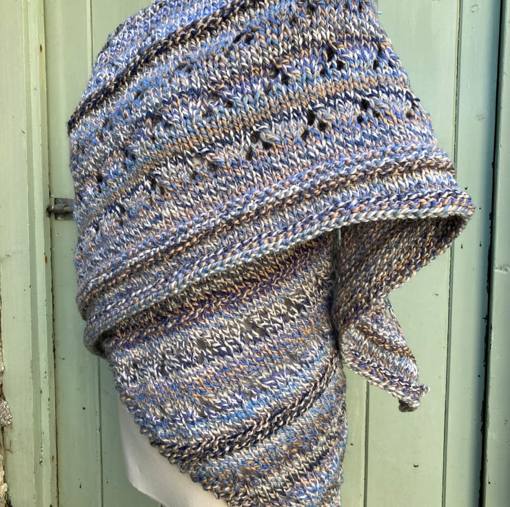 Designed and hand knitted by me using Sirdar Escape wool rich chunky. This yarn is 51% wool. Yarn label states it can be washed in the machine in cold water. Needs reshaping while wet and flat drying