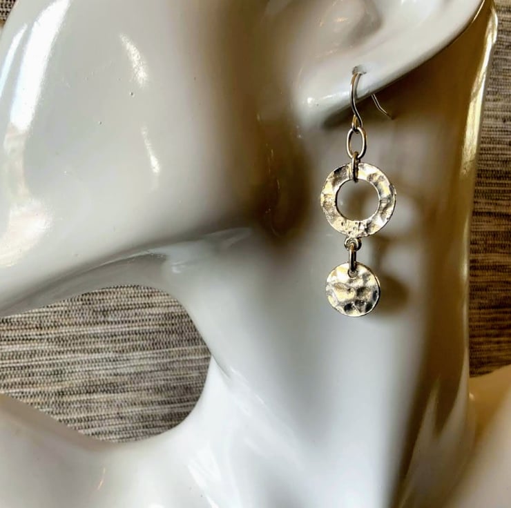 Two metal circular pieces joined together to make a lovely pair of dangle earrings.