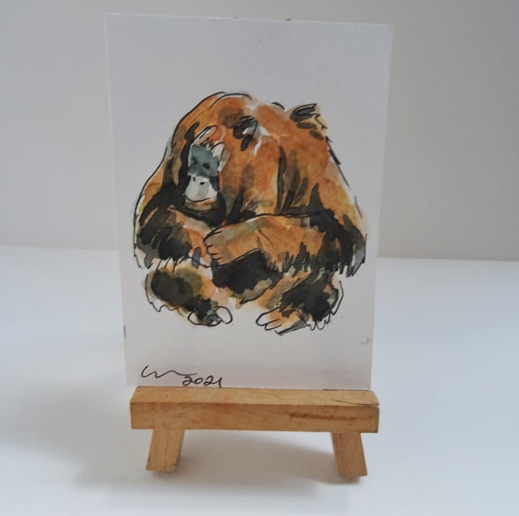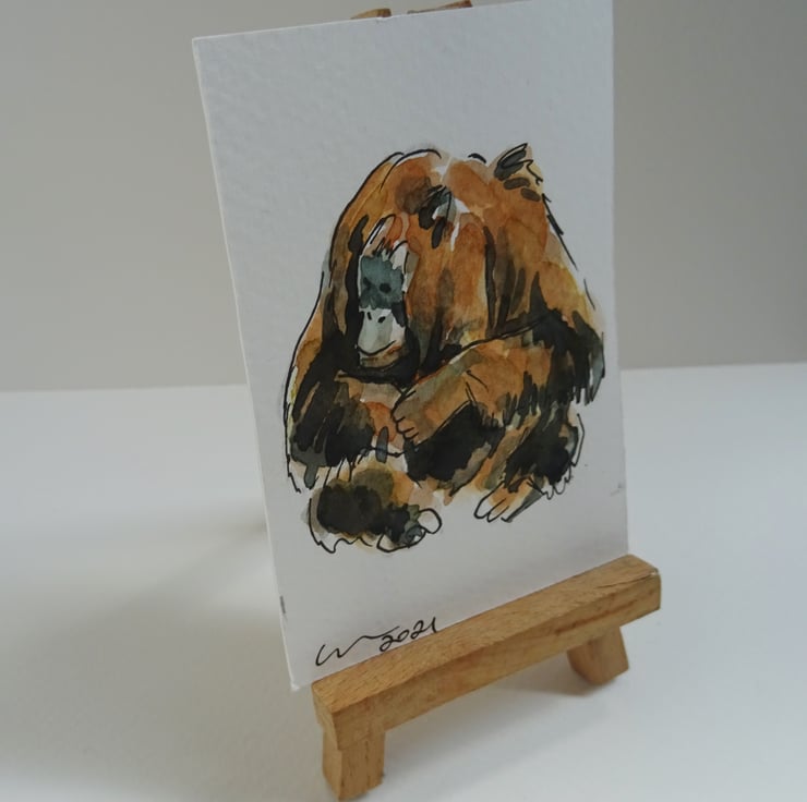 Orangutan Sitting Original One-Off Watercolour Painting with Ink on 300gm acid free watercolour paper.