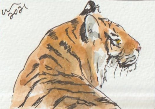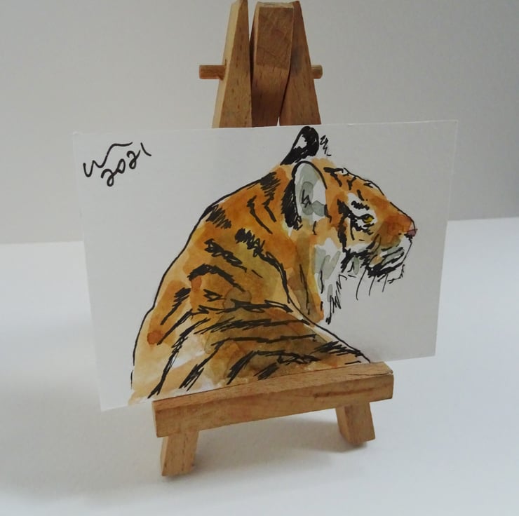 Looking Tiger Original One-Off Watercolour Painting with Ink on 300gm acid free watercolour paper.