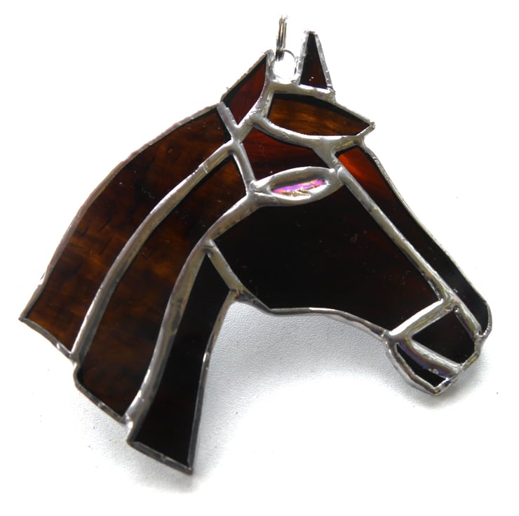 The suncatcher hangs from a little chain which is securely attached to the top of horse. It is approximately 10cm high and wide.