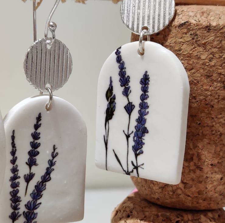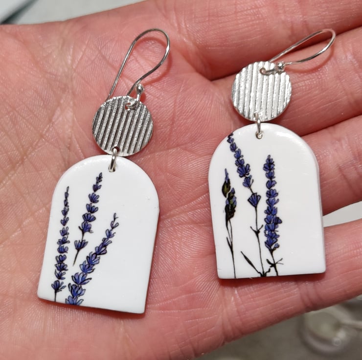 Hand made polymer clay earrings with a floral patten connected to a silver colour embellishment. Hook fixing which can be painted with hypoallergenic coating for free on request. Please see all photos for close up detail. All products handmade therefore there may be minor imperfections. Please note this pair looks like the design has teard. Each pair sold as seen, message for more info