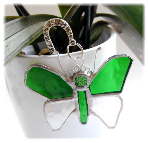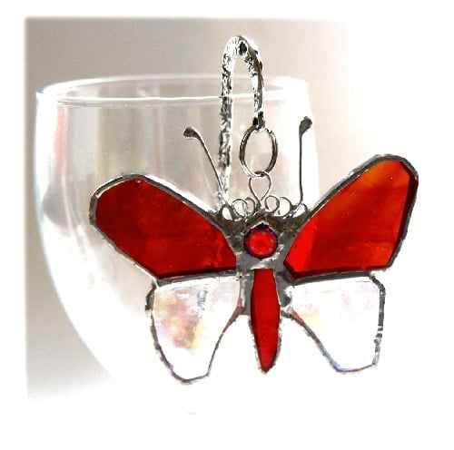 A very pretty stained glass butterfly entirely handmade using the Tiffany copper foil technique.