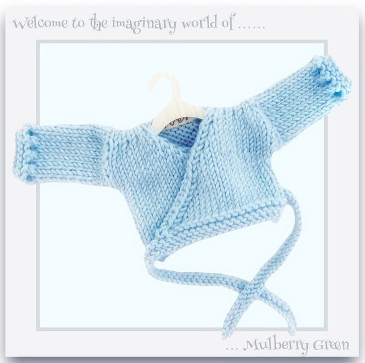 A cute powder blue ballet cardigan to keep Maisy and her little friends warm at their lessons. The cardigan goes over the top of a leotard or can just be worn with a tutu. It has a crossover front with straps - one of the straps threads through a gap in the side seam and ties neatly at the back.