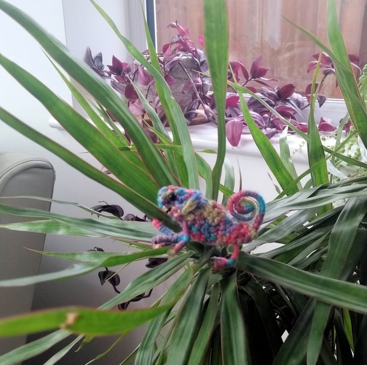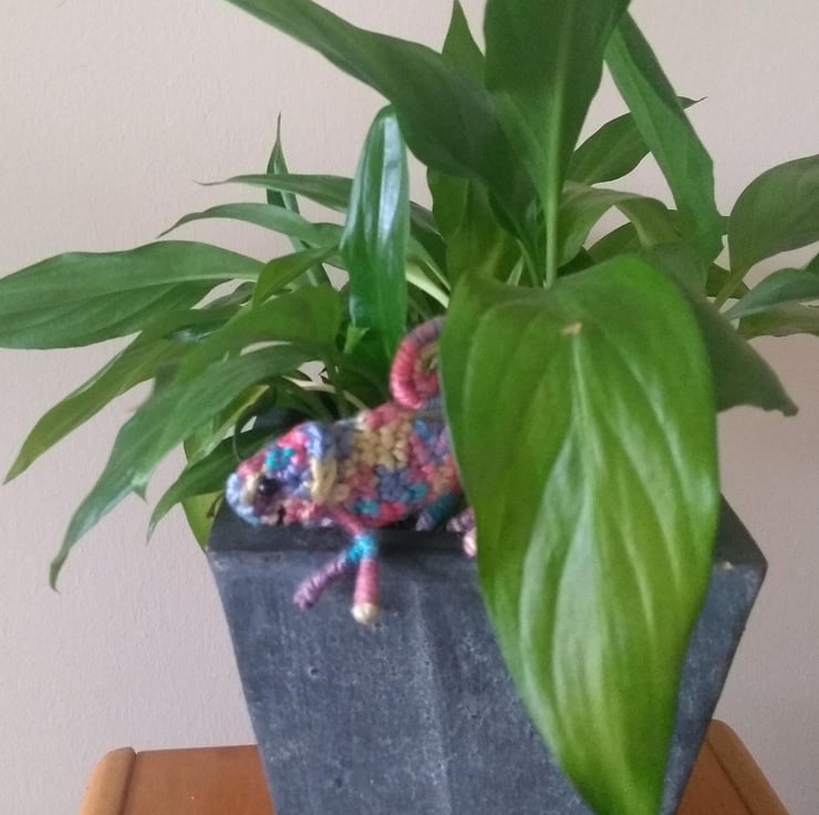 Chameleon crochet decoration, Plant hugger, ornament, quirky gift, SALE
