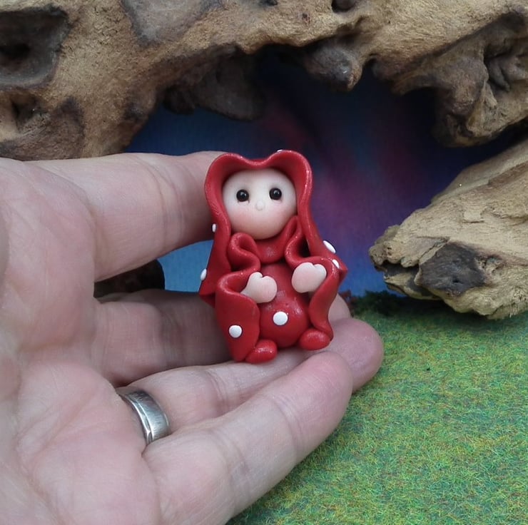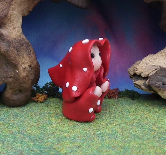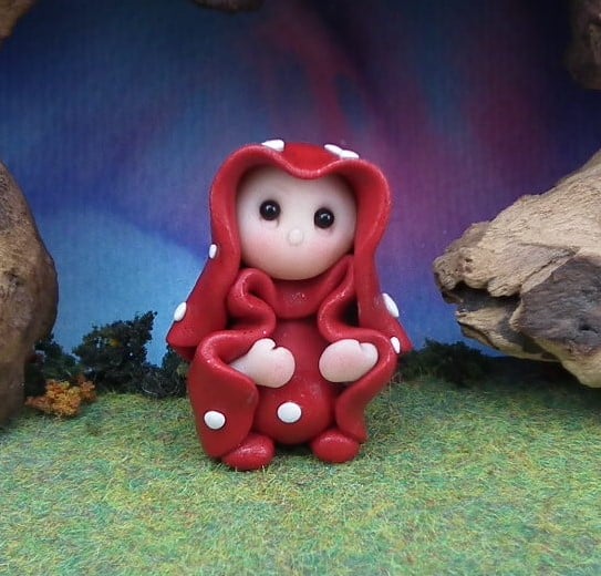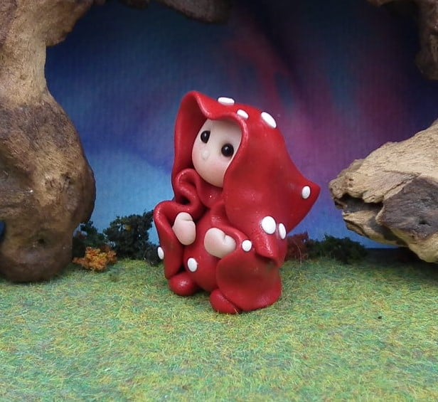 This is a 'one of a kind' creation having been entirely handmade without the use of moulds here at my studio on the Sussex Coast. Modelled with artist blend polymers, before sealing with lacquer, Suki has sparkling black onyx eyes. Suki the Toadstool Gnome is just one and a half inches tall.