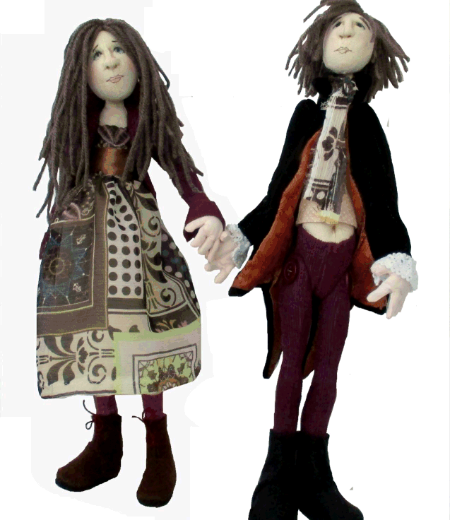 These are charming cloth dolls to sew. Perfect for goth or vintage styling. Their pattern includes both doll and their clothing.
