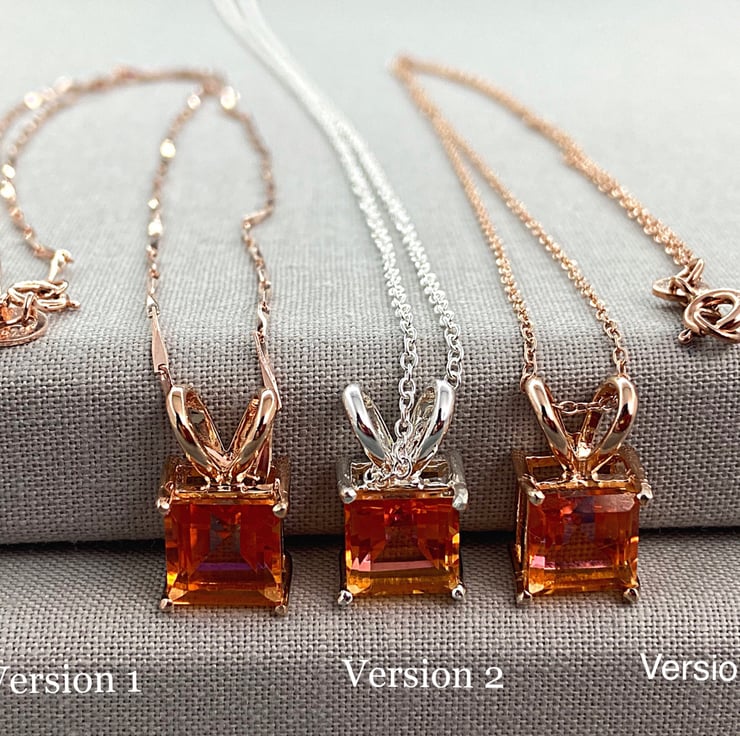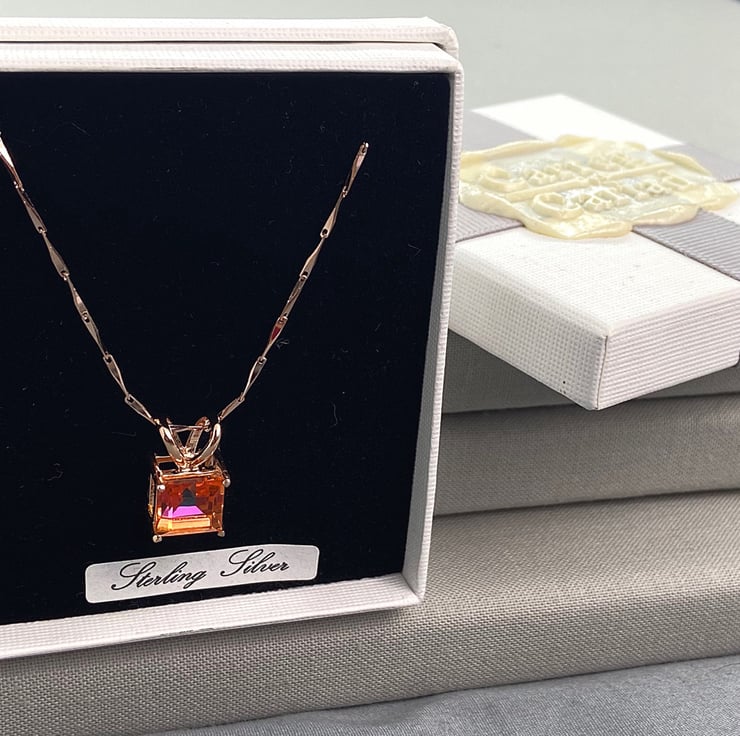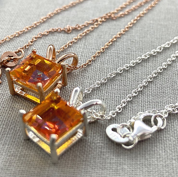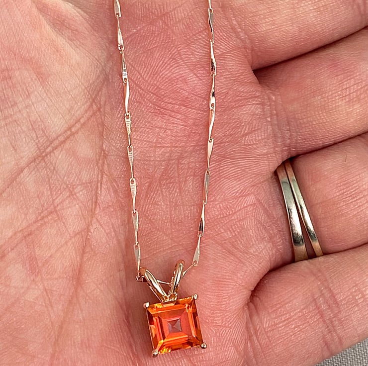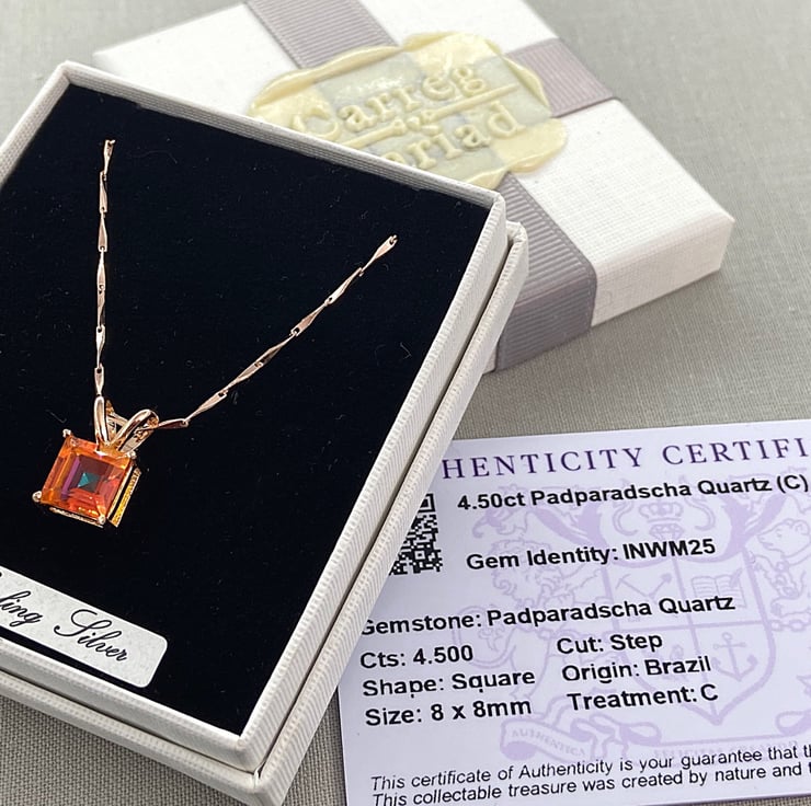 A truly beautiful and impressive pendant featuring 4.5carats square step cut Padpadradscha orange Quartz gemstone from Brazil. I’ve set the gemstone into the pendant mount using jewellers gem setting tools.