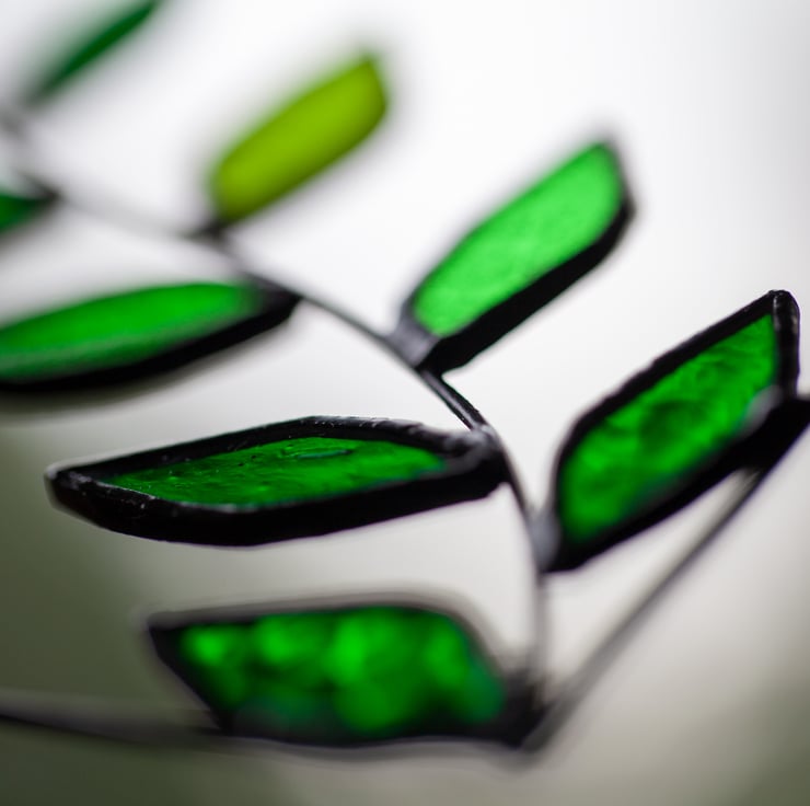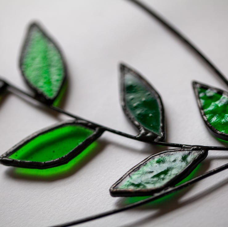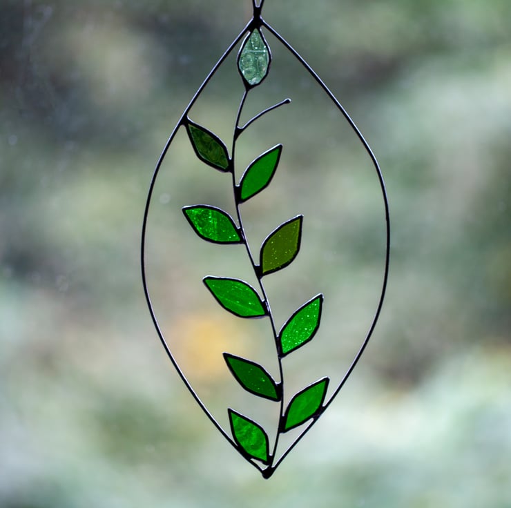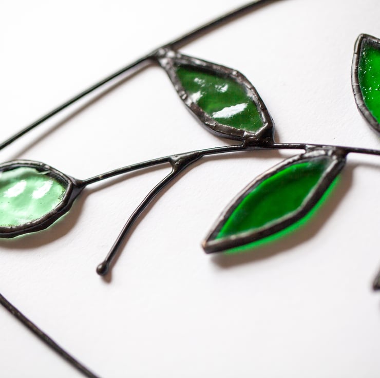 I've made this sweet stained glass suncatcher using the tiffany copper foiling technique. The colours of the glass are beautifully shown when hanging in a window catching the light or hung as a wall decoration. Makes a lovely present for nature and plant lovers but not only!