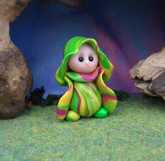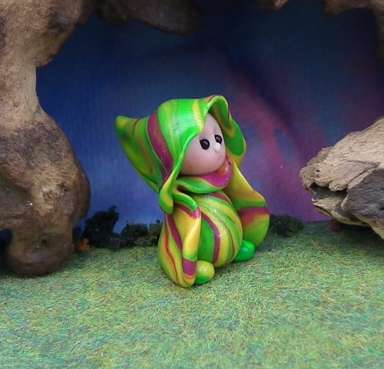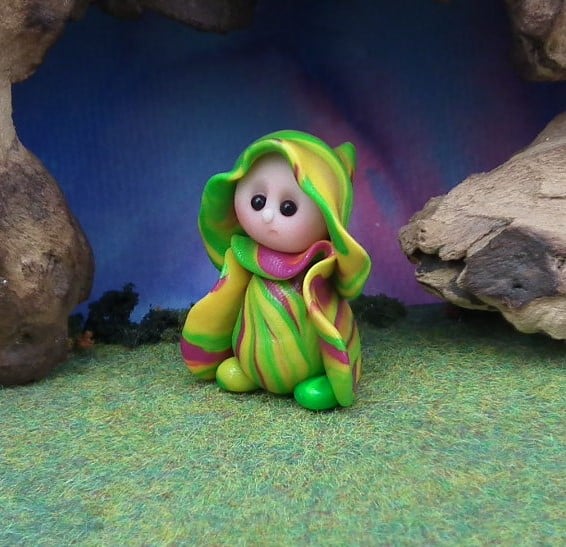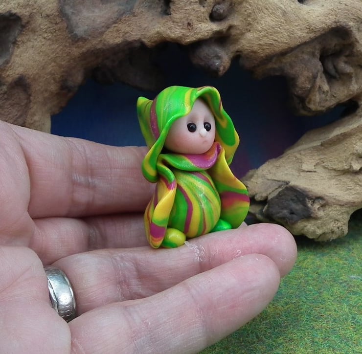 This is a 'one of a kind' creation having been entirely handmade without the use of moulds here at my studio on the Sussex Coast. Modelled with artist blend polymers, blushed before sealing with lacquer, Betha has sparkling black onyx eyes and variegated robes. Betha the Garden Gnome is just one and a half inches tall.