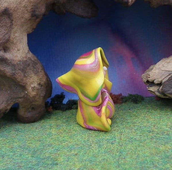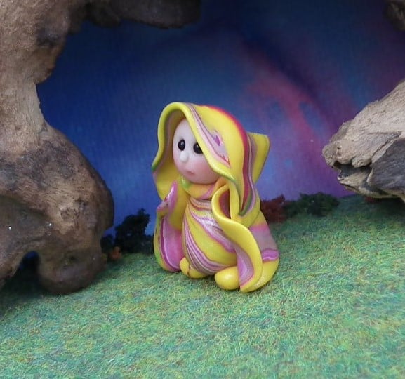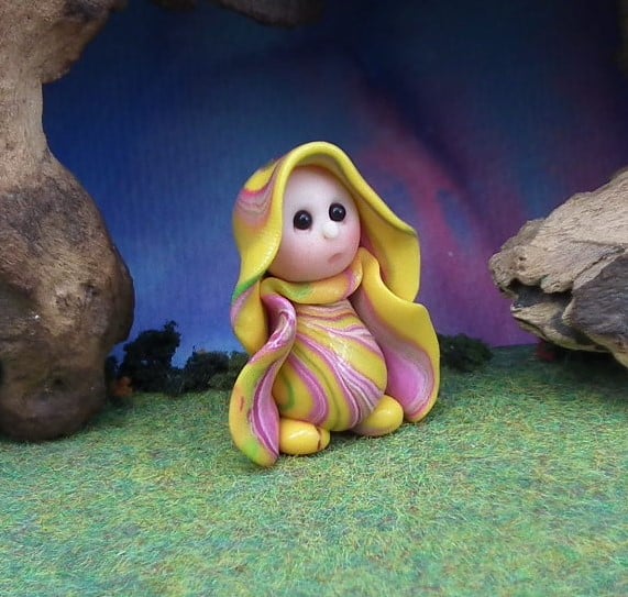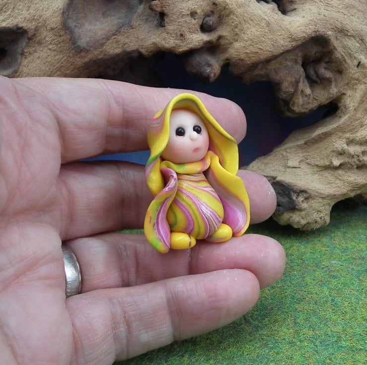 This is a 'one of a kind' creation having been entirely handmade without the use of moulds here at my studio on the Sussex Coast. Modelled with artist blend polymers, blushed before sealing with lacquer, Jester has sparkling black onyx eyes and variegated robes. Jester the Garden Gnome is just one and a half inches tall.