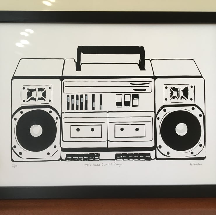 1990s Radio Cassette Player - Handmade Silkscreen Print A3