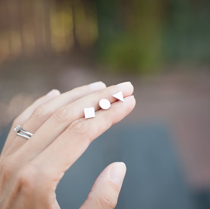 These earrings are hand sawn from Sterling Silver. The set of 3 mismatched studs means that you can pick and choose which to wear.