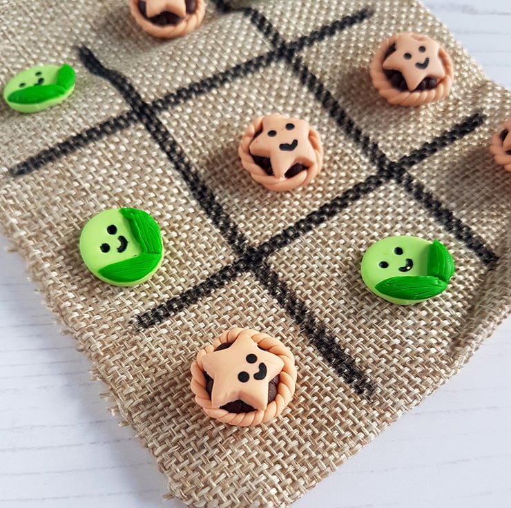 The kit includes 5 pieces of the two different styles, so 10 pieces in total to play a game, along with a hessian drawstring bag with the grid hand drawn on it to play! Keep all of your pieces safe inside too! It's also great for travelling and a fab Christmas Eve box gift!