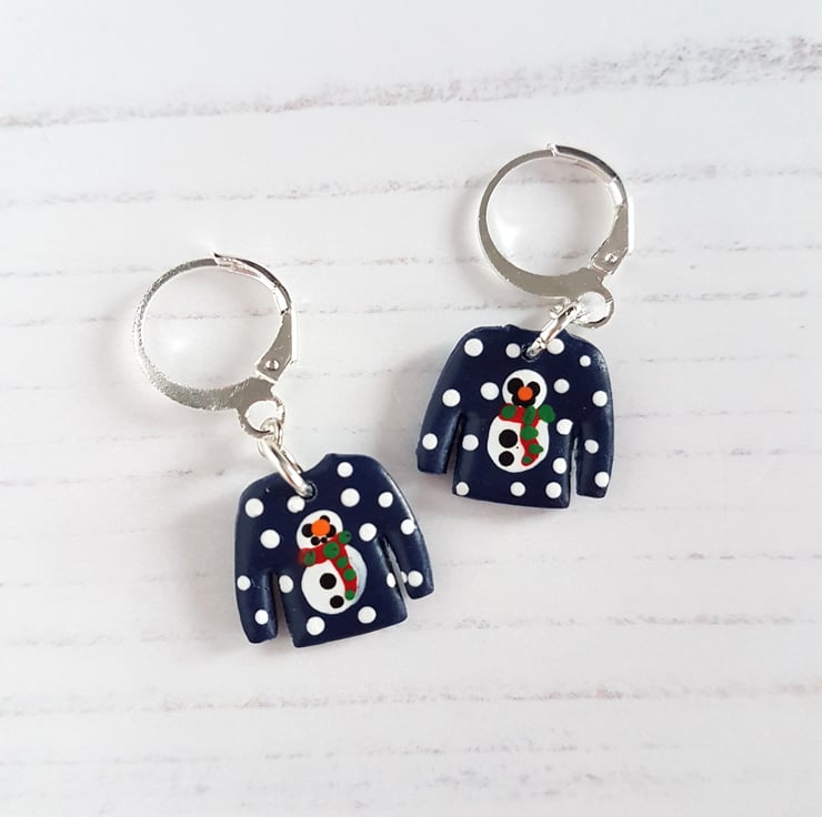 Choose your style from this gorgeous collection of Christmas jumper earrings! All made in colourful polymer clay, sanded for a smooth finish, then hand painted designs using acrylic paint are carefully added, sealed with a gloss to protect to finish.