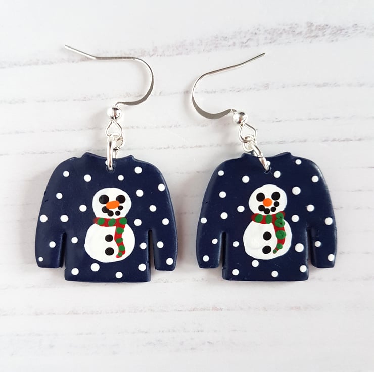 Choose your style from this gorgeous collection of Christmas jumper earrings! All made in colourful polymer clay, sanded for a smooth finish, then hand painted designs using acrylic paint are carefully added, sealed with a gloss to protect to finish.