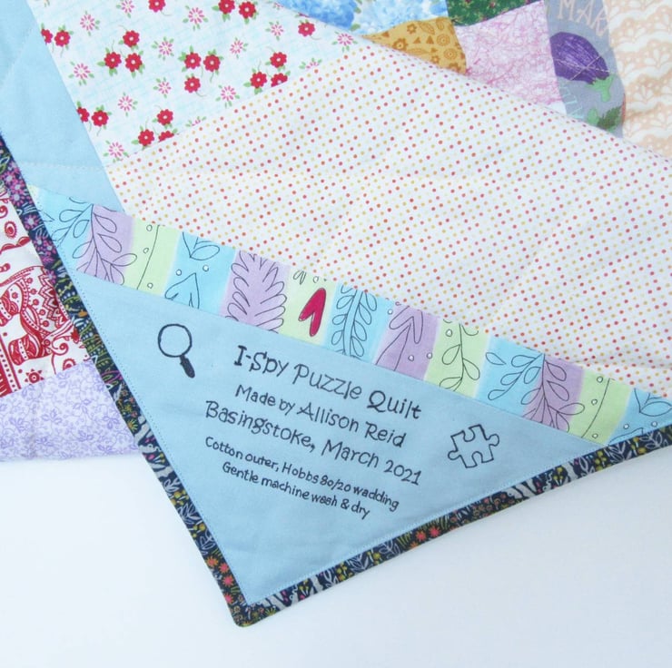 The quilt measures 60" x 47" (152cm x 120cm). A versatile size, useful as a baby playmat; a toddler/child snuggle blanket on the sofa or in the car; a picnic blanket; or the covering for a play den.
