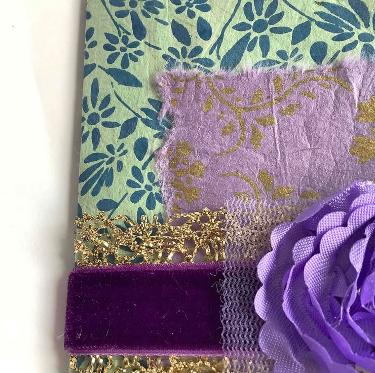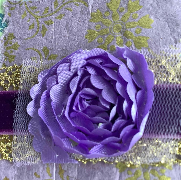 The final decoration consists of gold braid, purple velvet ribbon and finally the purple flower.