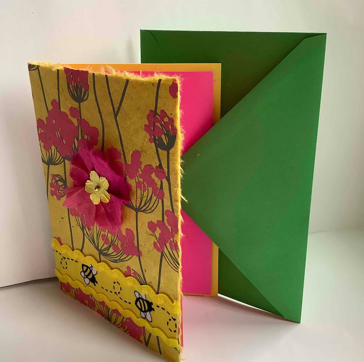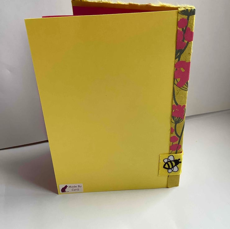 This card is part of the BRIGHT N CHEERY collection. The card itself is yellow (and green envelope) with a pink insert which is blank for your own message. A yellow
