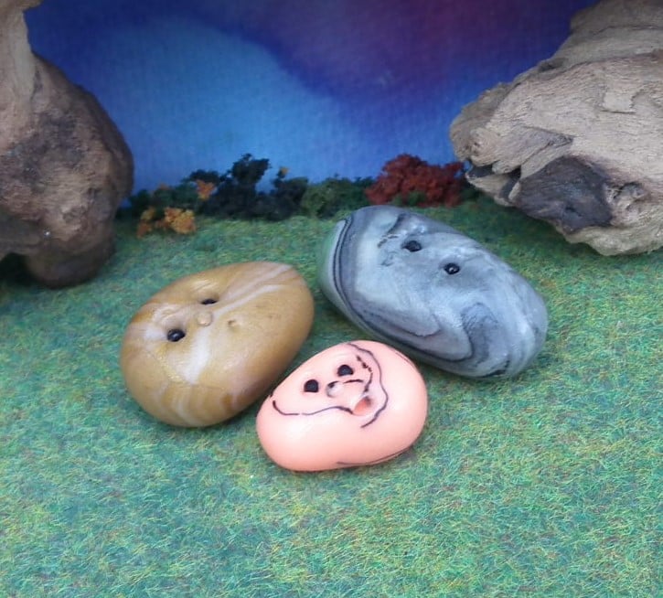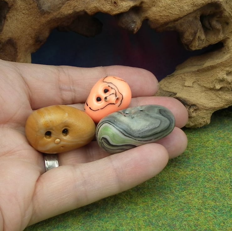 These are 'one of a kind' creations having been entirely handmade without the use of moulds here at my studio on the Sussex Coast. You will receive the three pebbles in the photos. Not suitable for small children.