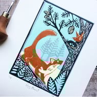 Are you a bear lover? This is the third in my series of charity Wildlife Tag Cards. A hand printed Kraft card tag features my popular Stargazey Bear in a snowy landscape. He can be easily removed to keep (perhaps you could use him as a bookmark or attach it to a special present?) Each bear is presented on a recycled paper card printed in the UK. The card (10cm x 15cm) comes with a brown kraft envelope and is packaged in a biodegradable eco cello pocket. Sent on his way to you in first class post. I will donate £1 from each sale to the charity Orphan Bear Rescue Centre.